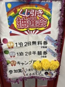 残念ながら1等賞は出なかったのですが、ご夫婦揃って記入及びフォローして頂いたお子様に2回くじを頼んだら、3等賞のキャンプ用品をGETされて会場は大興奮でした(*´▽`*)